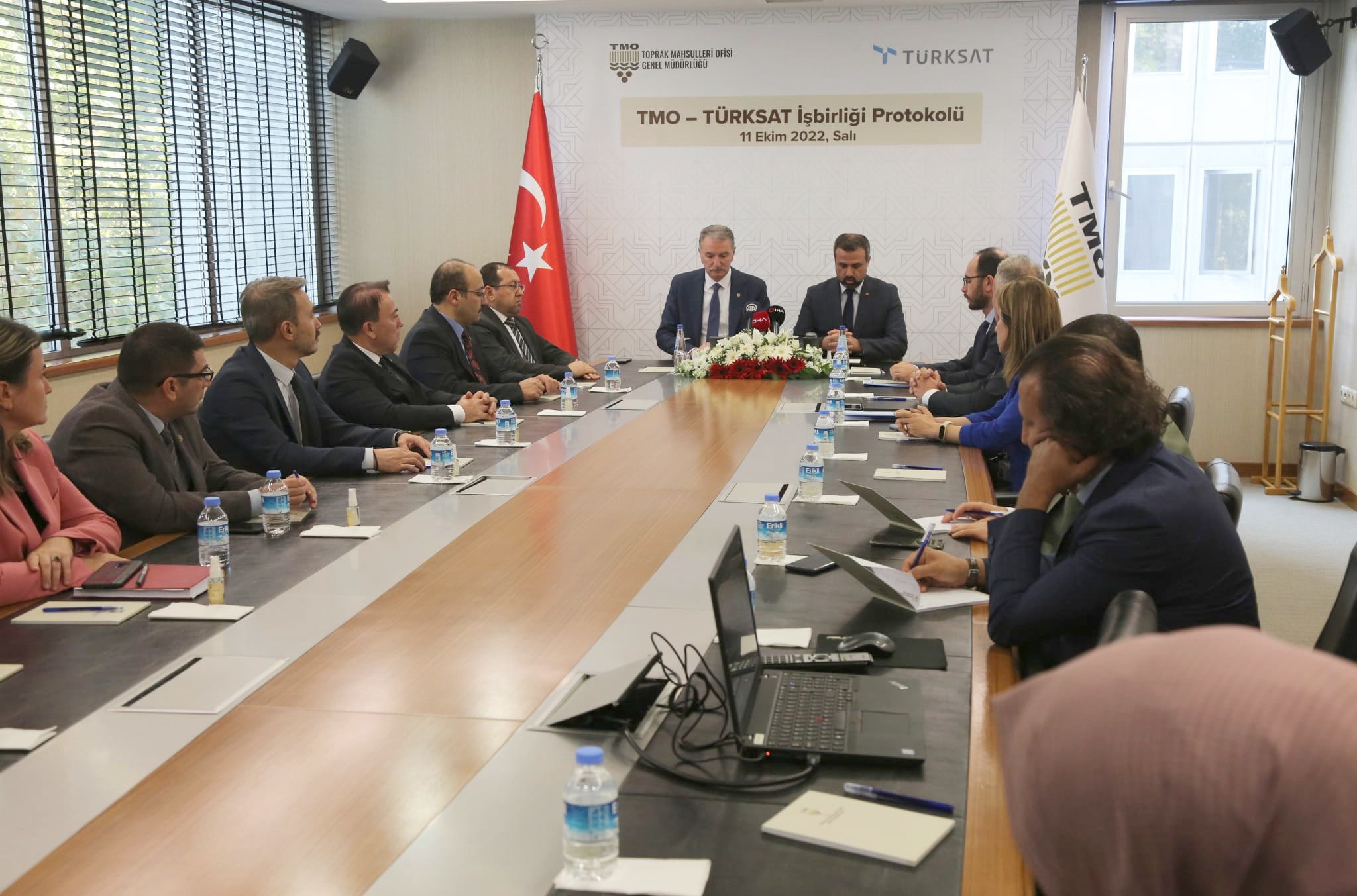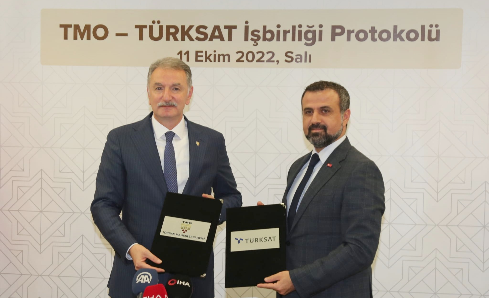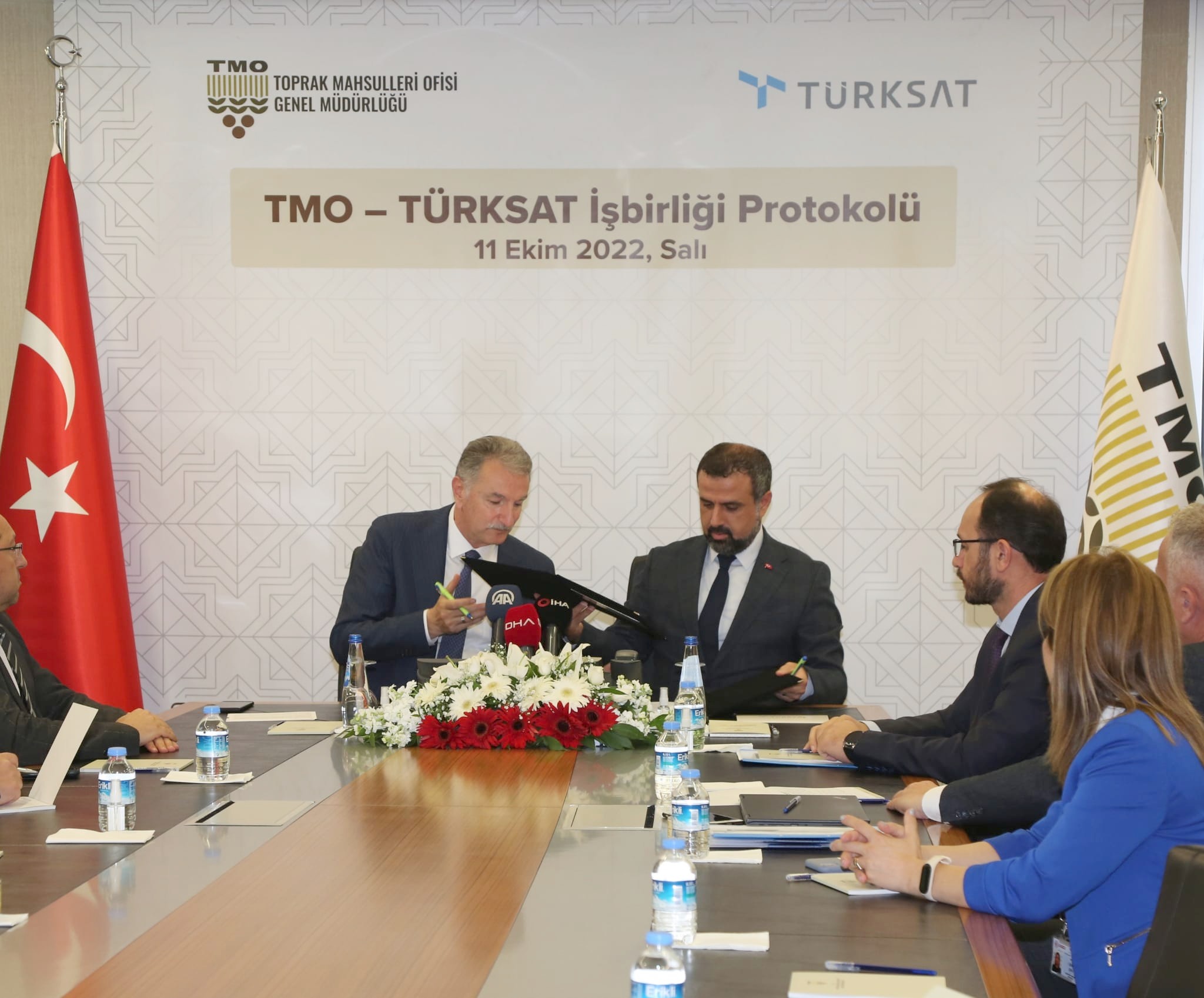 A cooperation protocol was signed between TMO and Türksat in order to carry out the measurement, control and yield estimation of the cultivation areas of the products in the field of activity of TMO by means of satellite images. TMO General Manager Ahmet Güldal and Türksat General Manager Hasan Hüseyin Ertok attended the signing ceremony held at TMO General Directorate.