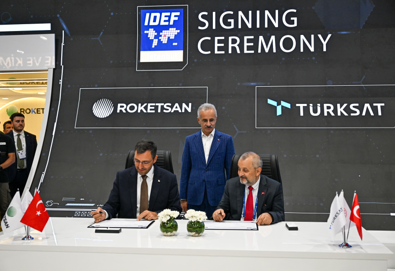 Türkiye’s satellite operator Türksat and Roketsan, one of the leading institutions of the defense industry, signed a significant cooperation within the scope of IDEF 2025. The protocol regarding joint work to be carried out in the field of satellite launch systems and space technologies was signed by Türksat CEO Ahmet Hamdi Atalay and Roketsan CEO Murat İkinci under the auspices of Minister of Transport and Infrastructure Abdulkadir Uraloğlu.