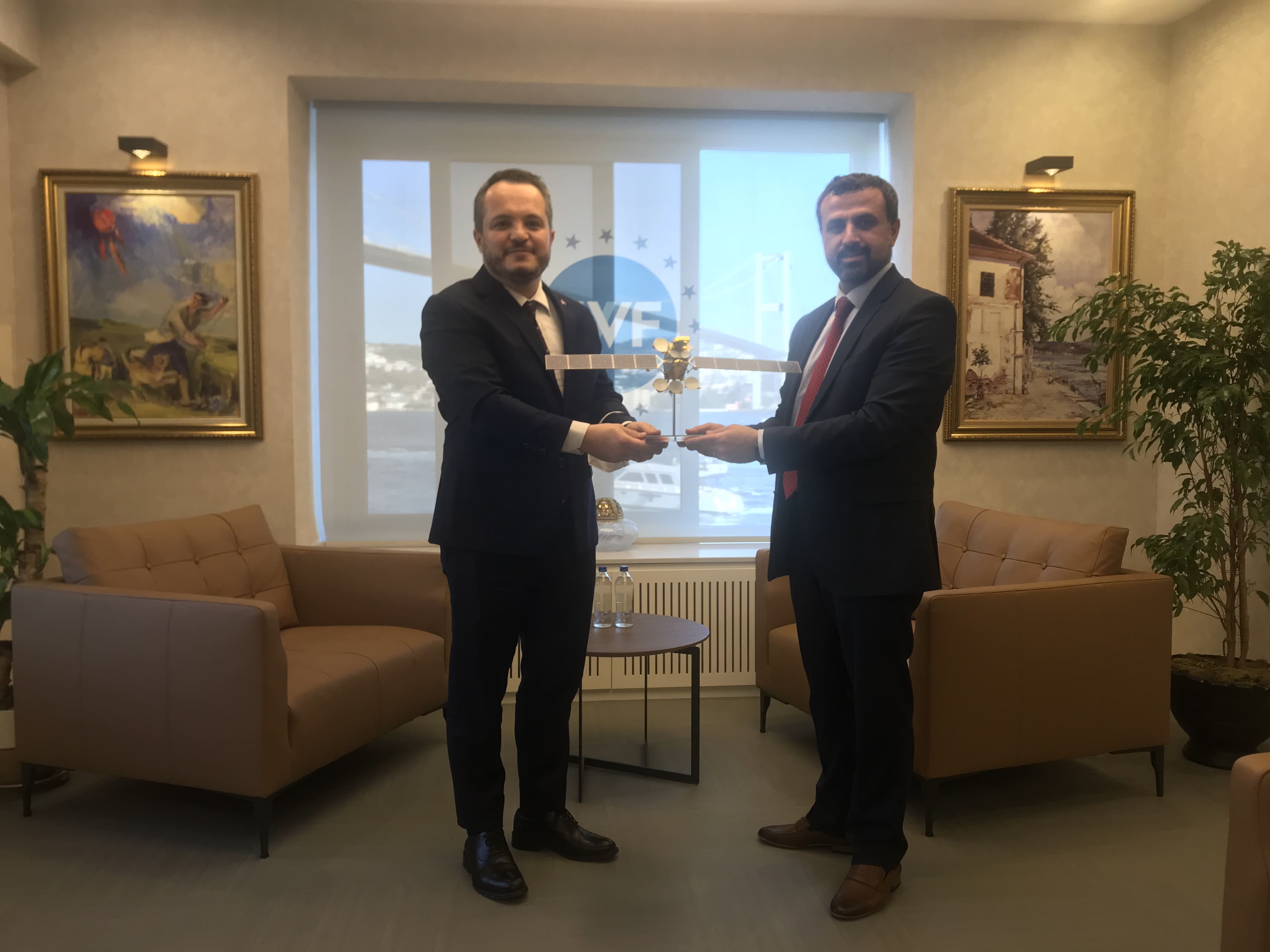 Türksat CEO Hasan Hüseyin Ertok, Vice President Metin Çavuşoğlu and Türksat Budget and Financial Control Director Oğuz Enis Peru, paid a courtesy visit to Salim Arda Ermut, who in March was appointed president of Turkey Wealth Fund.