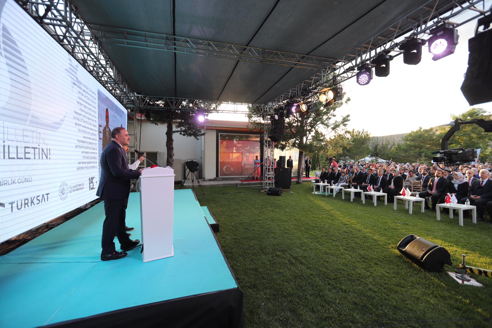 Türksat Genel Müdürü Cenk Şen ise “Milletimizin kararlılığına denk bir şekilde, şehitlerimizin, gazilerimizin ve şirketimiz çalışanlarının, o karanlık gecede hain teröristlere karşı verdiği mücadeleyi kurumsal kültürümüzün dayanağı hâline getirerek hatırda tutmayı, gelecek nesillere aktarmayı görev bileceğiz.” dedi.