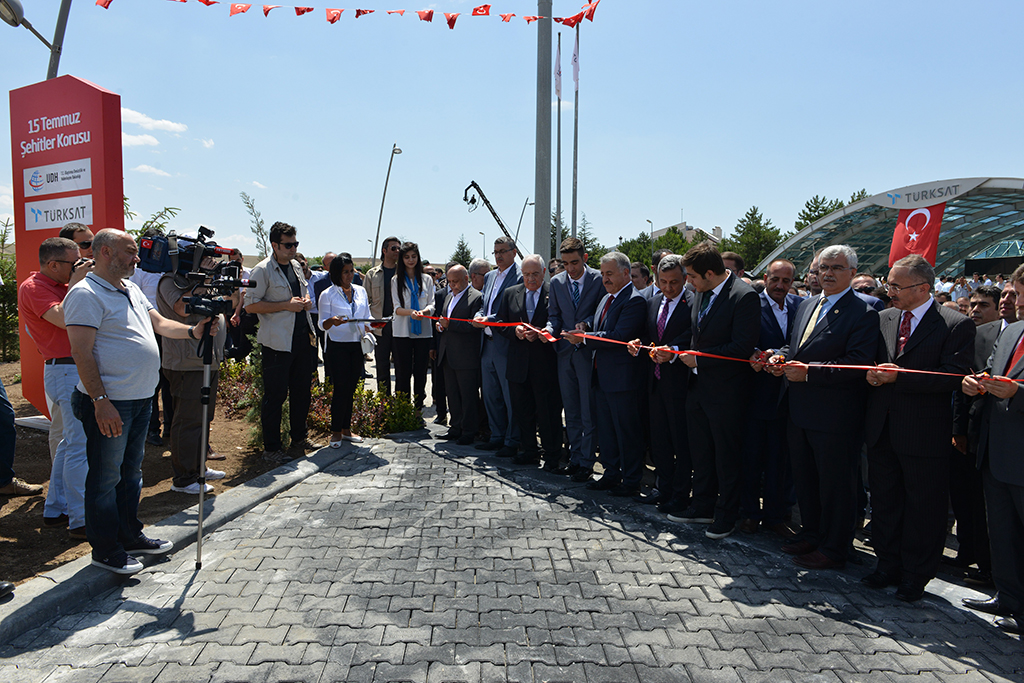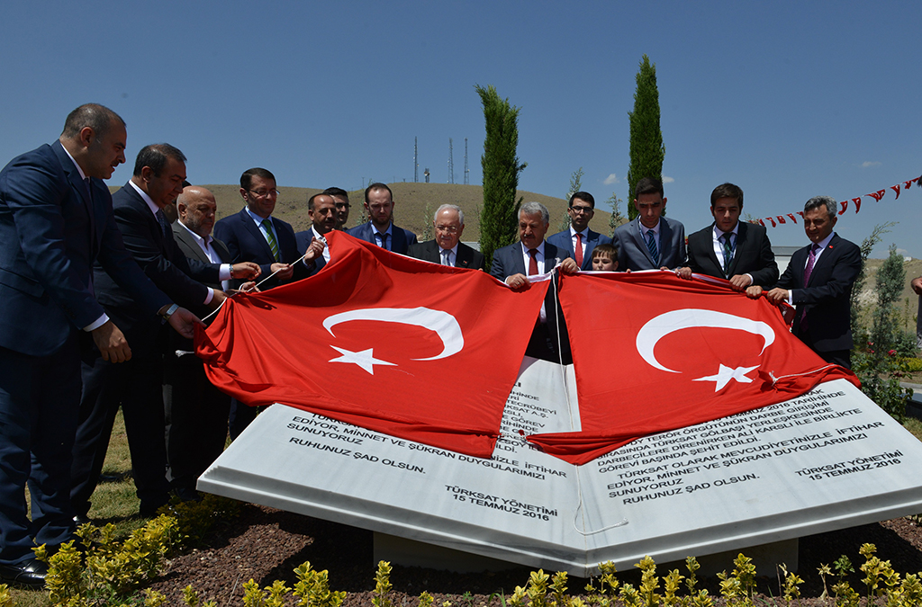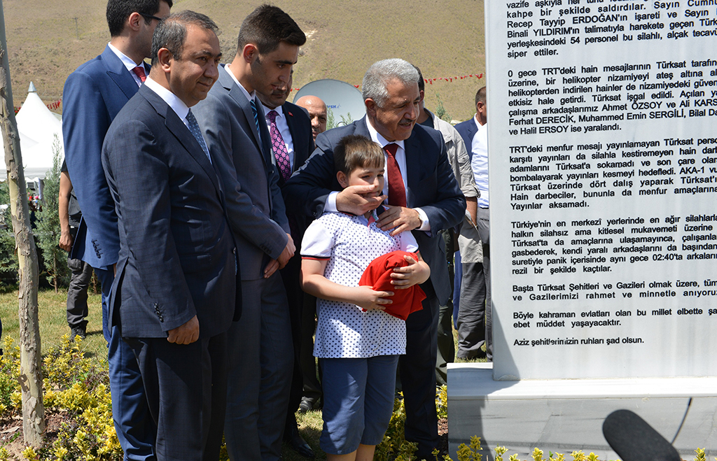 Türksat Genel Müdürü Şen, Bakan Arslan ve beraberindekilere, 15 Temmuz Türksat şehitleri anısına açılışlarını yapacakları yerler hakkında bilgi verdi. İlk olarak 15 Temmuz Şehitler Korusu açılışını yapan Bakan Arslan ve beraberindekiler, ardından Türksat şehitleri Ahmet Özsoy ve Ali Karslı anısına yapılan anıtın açılışını yaptı. Bakan Arslan, anıtın üzerinde bulunan Türk bayrağını şehit oğlu Bedirhan Karslı’ya teslim etti.