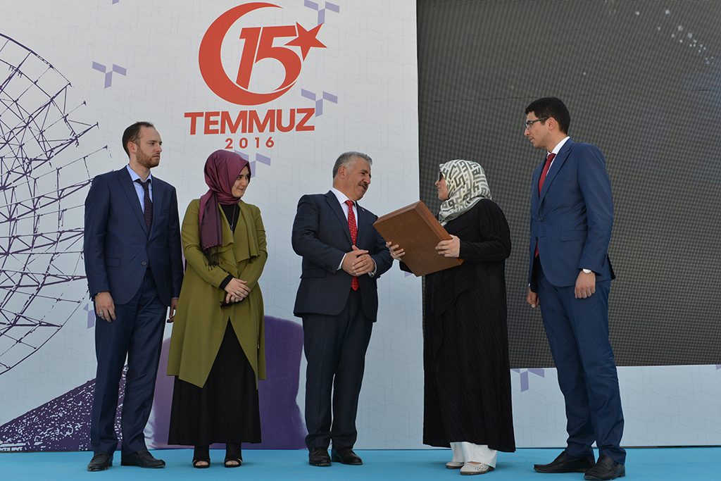 Ülkeyi çok daha güçlü şekilde gelecek nesillere taşıyarak şehitlerin hakkını ödeyebileceklerini ifade eden Arslan, bu nedenle 1 yıldır unutmamak, unutturmamak, şehitlerin kanlarının hakkını verebilmek adına hiç durmadıklarını belirtti. Arslan, ulaştırma, denizcilik ve haberleşme ailesinin bu süre içinde hainlere inat aralarında Yavuz Sultan Köprüsü, Avrasya Tüneli, Yüksek Hızlı Tren Garı’nın bulunduğu bir dizi projeyi hayata geçirdiklerini kaydetti.