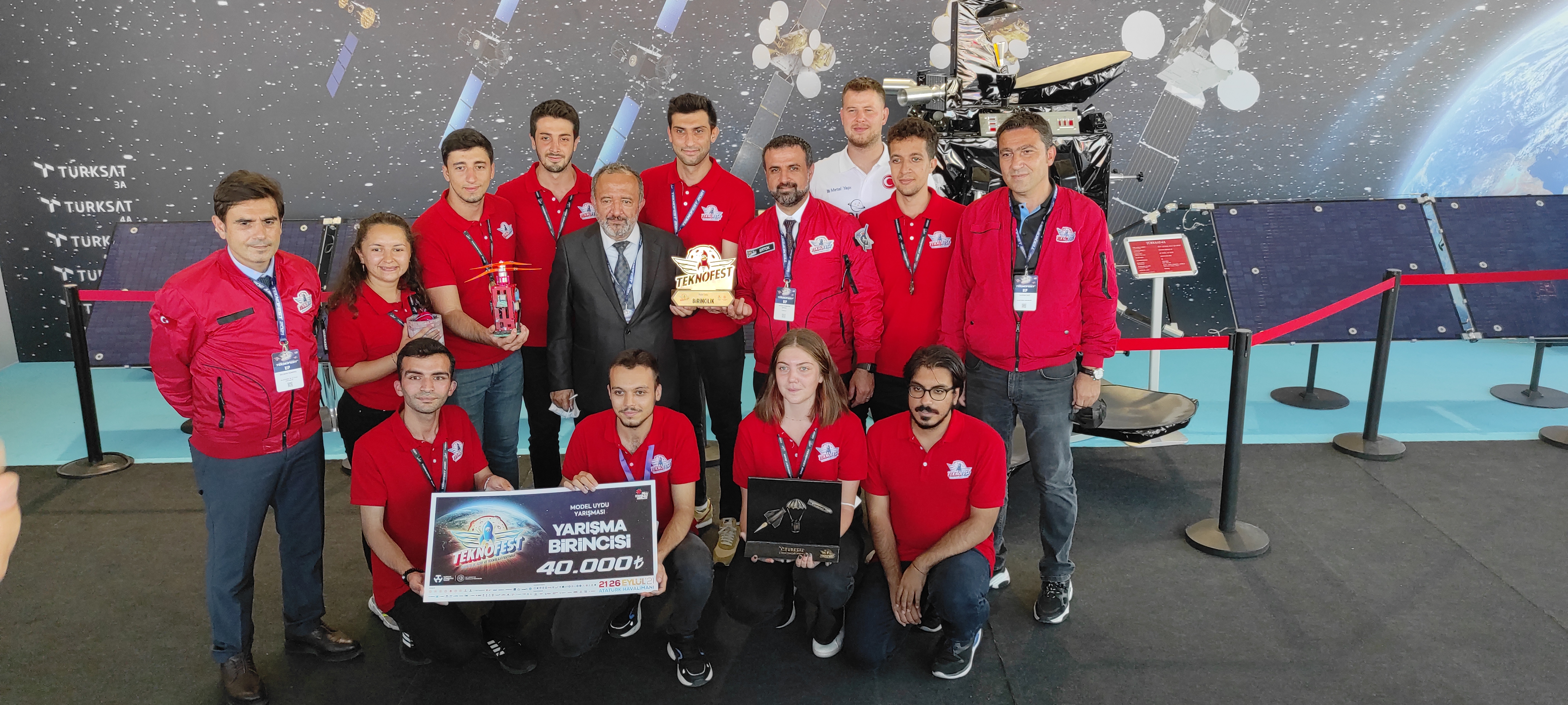 Geçtiğimiz hafta Tuz Gölü’nde gerçekleştirilen Türksat Model Uydu Yarışması’nın sonuçları İstanbul'da devam eden Teknofest etkinliğinde açıklandı. Zonguldak Bülent Ecevit Üniversitesi’nden yarışmaya katılan B-Dispate takımı birinci olarak ödülünü Cumhurbaşkanımız Sayın Recep Tayyip Erdoğan'ın elinden aldı.