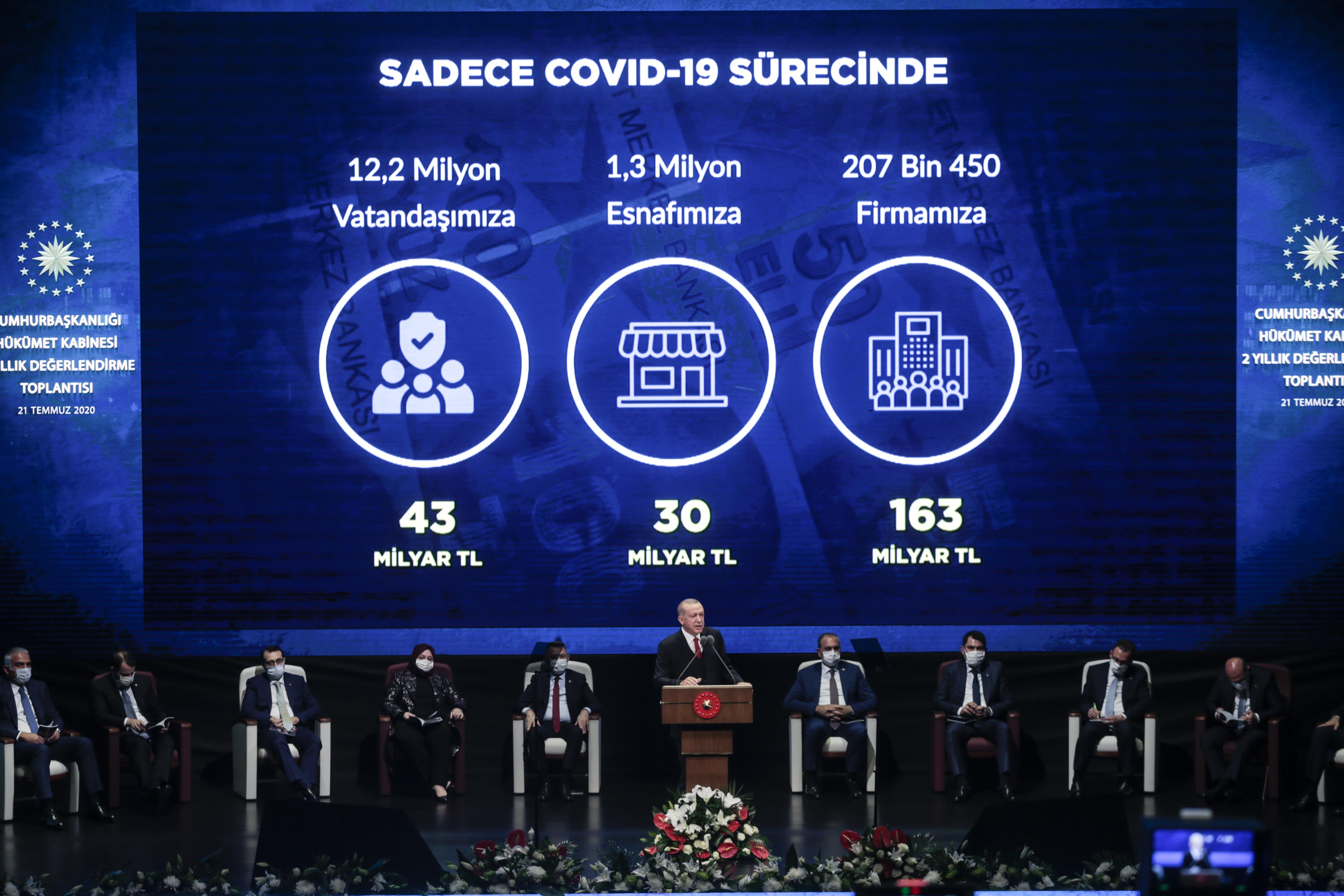 Erdoğan, Aralık 2019'da ilk enerji beslemesi yapılarak üretimi tamamlanan Türksat 5A uydusunda son testlerin devam ettiğini ve uydunun bu yılın üçüncü çeyreğinde yerde teslim alınarak dördüncü çeyrekte uzaya fırlatılacağını söyledi.
