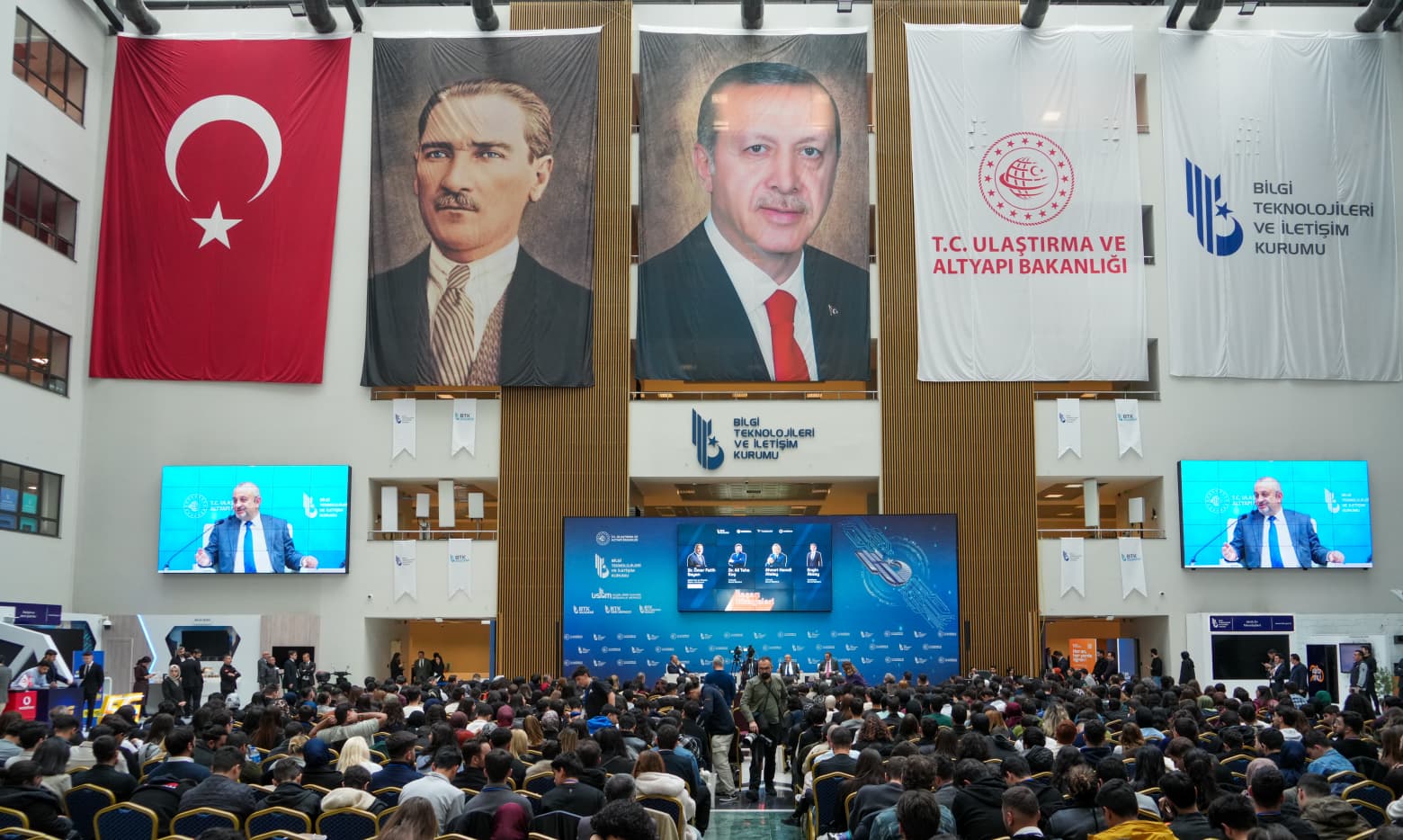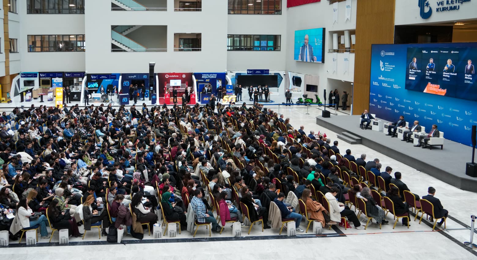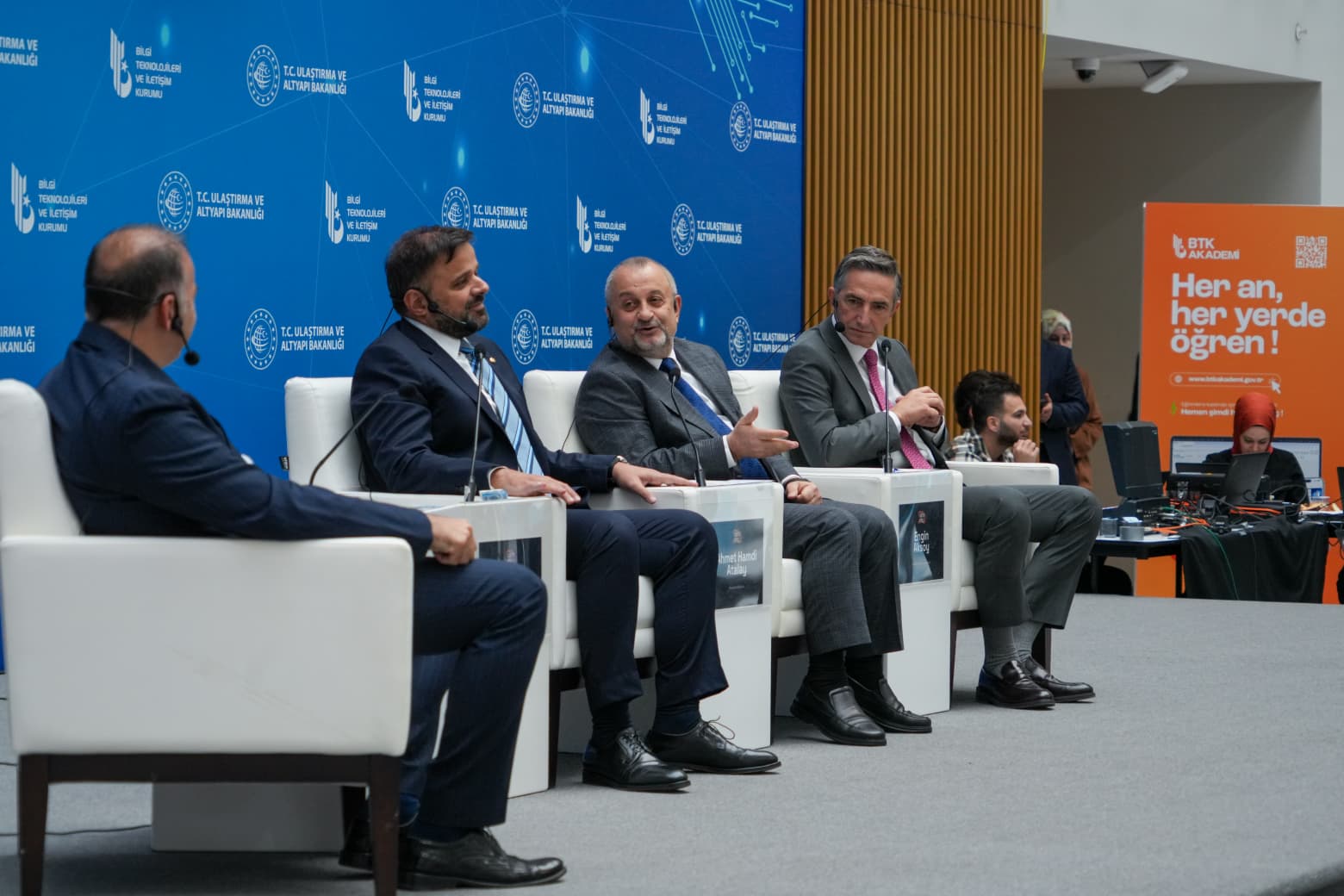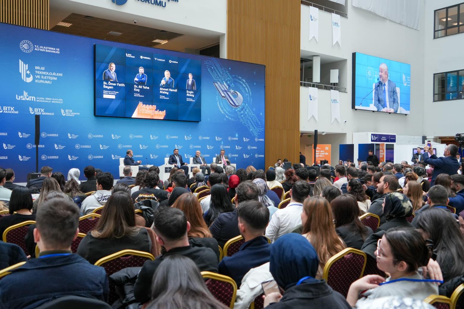 Açılış konuşmalarının ardından Ulaştırma ve Altyapı Bakan Yardımcısı Dr. Ömer Fatih Sayan’ın moderatörlüğünde gerçekleştirilen “Başarı Hikâyeleri” oturumuna Türksat A.Ş. Genel Müdürü Ahmet Hamdi Atalay, Turkcell Genel Müdürü Ali Taha Koç ve Vodafone Türkiye CEO’su Engin Aksoy, konuşmacı olarak katıldılar. Türksat Genel Müdürü Ahmet Atalay, konuşmasında kariyer yolculuğunun kritik dönemeçlerine değinerek, gençlere önemli mesajlar verdi. Elektrik-elektronik mühendisliğini seçmesinin kendi hayatında belirleyici bir adım olduğunu ifade eden Atalay, iş hayatına giriş sürecine ilişkin açıklamalarda bulundu. Atalay, “Üniversitede bitirme projesi hazırlarken somut bir ürün ortaya koyma isteğim, hayatımın yönünü belirledi. Takometreye ihtiyaç olduğu söylendi; uzaktan ölçüm yapacak bir alet gerekiyordu. O devreyi bitirme projesi olarak yaptım, ürün hâline getirdim. Bu çalışma işe girmeme vesile oldu. Başvurduğum merkezde tecrübemi sordular; projemi anlattım. Müdür teknolojiye meraklıydı. ‘O zaman sen yarın gel başla.’ dedi. Küçük bir karar bazen hayatı değiştirebiliyor.” diye konuştu.