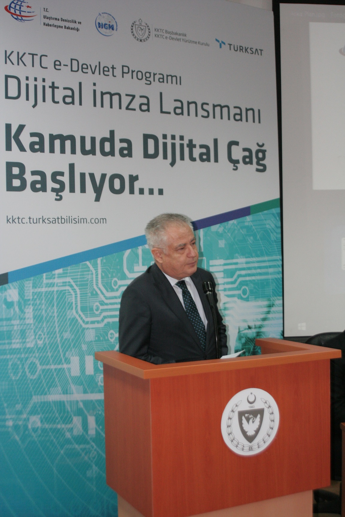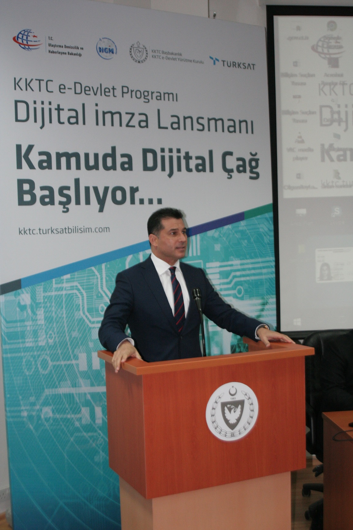 Müsteşar Yardımcısı Zerey ise KKTC e-Devlet Programı dâhilinde planlanan projeler hakkında bilgi vererek, program kapsamında 19 projenin yer aldığını ve bunlardan 7 tanesine başlandığını belirtti. e-Nüfus, e-Kimlik ve e-İmza projelerinin “e-devlet”in temelini oluşturan önemli bileşenlerden olduğunu söyleyen Zerey, gerçekleşecek e-İmza lansmanının KKTC açısından öneminin altını çizdi. Elektronik Belge Yönetim Sistemi’nin merkezi kurulumunun tamamlandığını ileten Zerey, tüm bakanlıkların, 40 kurumun ve 28 belediyenin yılsonuna kadar BELGENET’e geçerek bu alanda e-dönüşümün tamamlanacağını iletti.