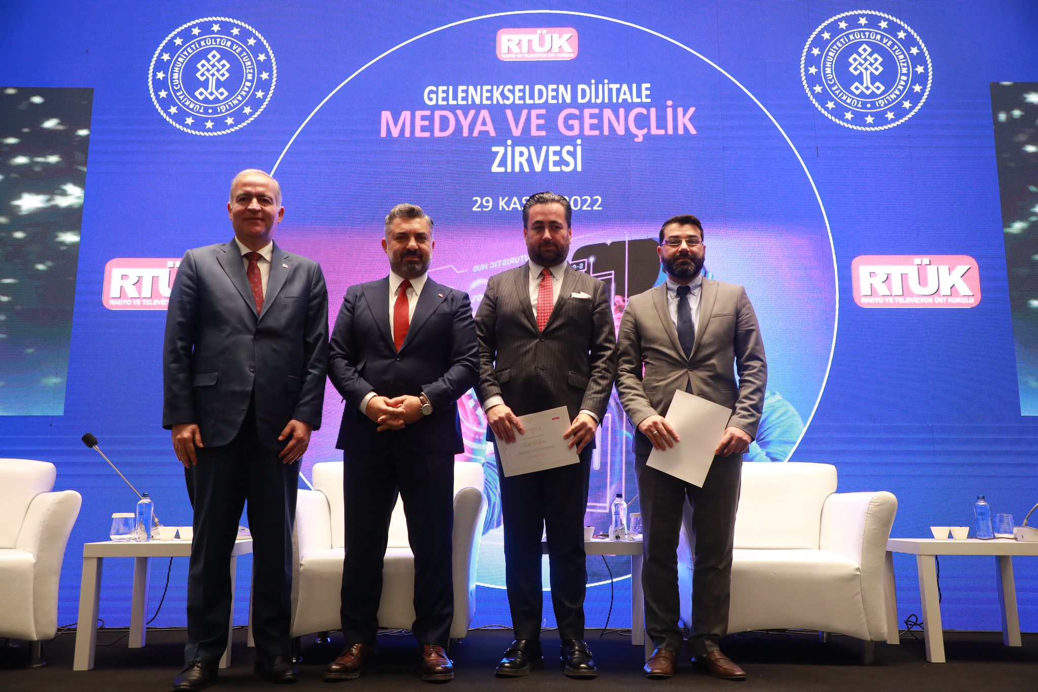 RTÜK Başkanı Ebubekir Şahin’in konuşmasıyla başlayan zirvede açılış oturumunun sonunda, zirveye sağladığı katkılardan dolayı Türksat A.Ş.’ye verilen NFT sertifikasını Türksat A.Ş. Genel Müdür Yardımcısı Metin Çavuşoğlu RTÜK Başkanı Ebubekir Şahin ve Aile ve Sosyal Politikalar Bakan Yardımcısı İsmail Ergüneş’in elinden aldı.