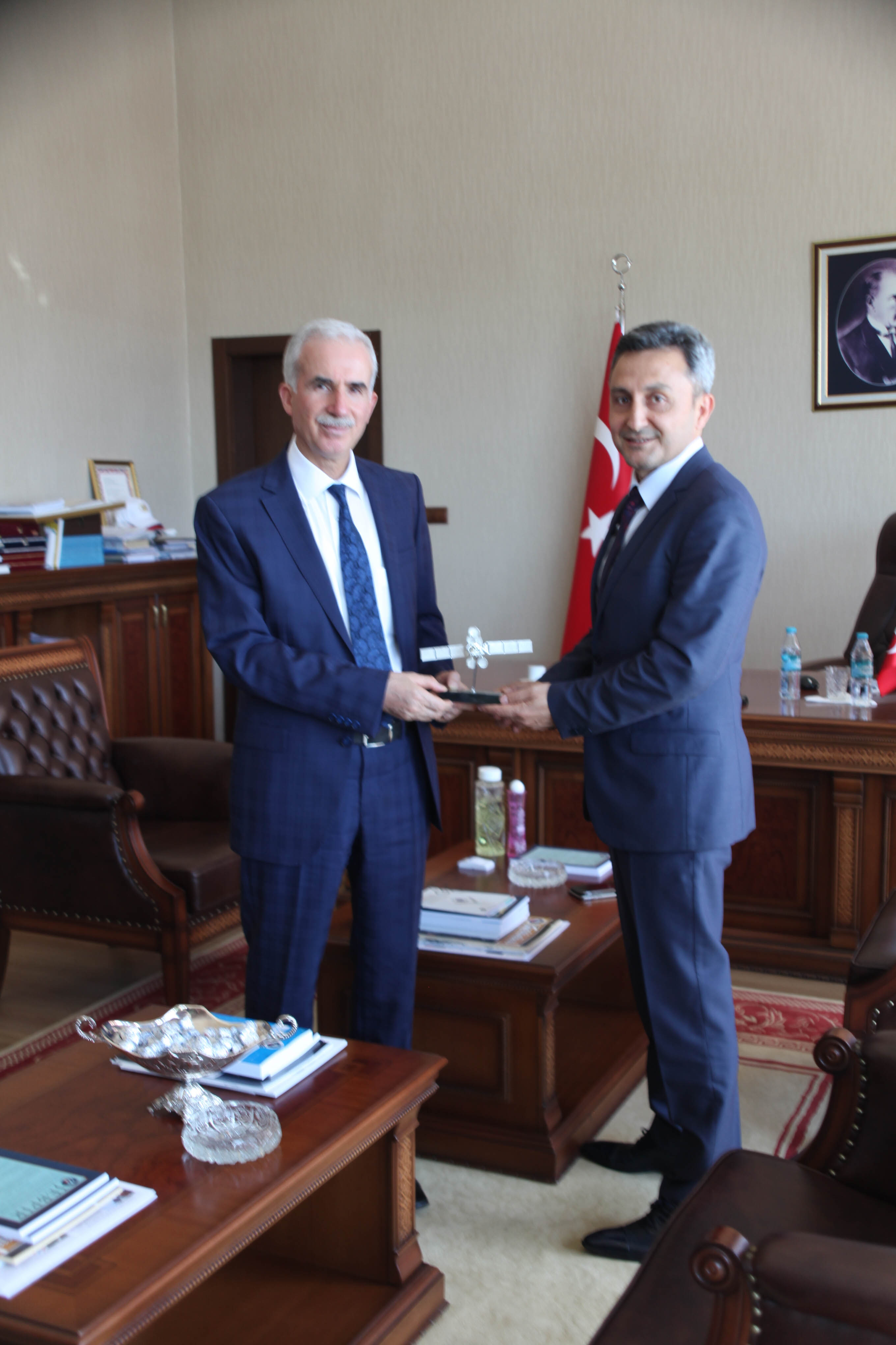 Konuşmaların ardından Atalay, Özsoy’un eşi Yasemin Özsoy’a ve oğlu Abdullah’a plaket takdim etti.