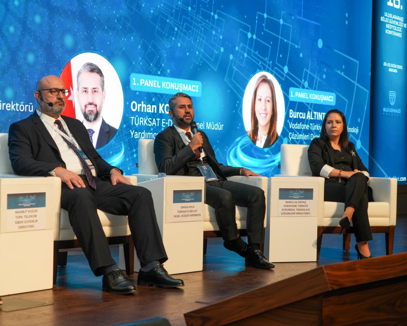 Türksat A.Ş. e-Devlet Genel Müdür Yardımcısı Orhan Koca “Siber Güvenlikte Gelecek Yaklaşımlar ve Siber Güvenlik Düzenlemeleri” panelinde konuştu. Koca, kamu kurumlarının dijitalleşme sürecinde Türkiye’nin e-Devlet altyapısının ulaştığı noktayı ve geleceğe yönelik hedefleri değerlendirdi. Türkiye’nin dijital kimlik alanındaki dönüşümünde e-Devlet Kapısı’nın kritik bir rol oynadığını anlatan Koca, “Bugün e-Devlet Kapısı, 65 milyonu aşkın vatandaşımız tarafından aktif olarak kullanılıyor. e-Devlet şifresi, elektronik imza, mobil imza ve T.C. kimlik kartı ile giriş yöntemleri sayesinde vatandaşlarımızın kimlik doğrulaması güvenli hâle geliyor.” dedi. e-Devlet Kapısı’nın sadece vatandaşlara değil, kurumlar arası güvenli veri paylaşımına da hizmet ettiğini belirten Koca, “Yerli teknolojilerin geliştirilmesi ve kullanılması ise hem siber güvenlikte bağımsızlığımızı hem de teknolojik yetkinliğimizi güçlendiriyor. Türkiye’nin dijitalleşmesinde Türksat, e-Devlet Kapısı üzerinden güvenli, bütünleşik ve sürdürülebilir bir altyapı sunuyor. Önümüzdeki dönemde de yerli mühendislik gücümüzle, veri gizliliği ve siber güvenlik alanında öncü adımlar atmaya devam edeceğiz.” diye konuştu.