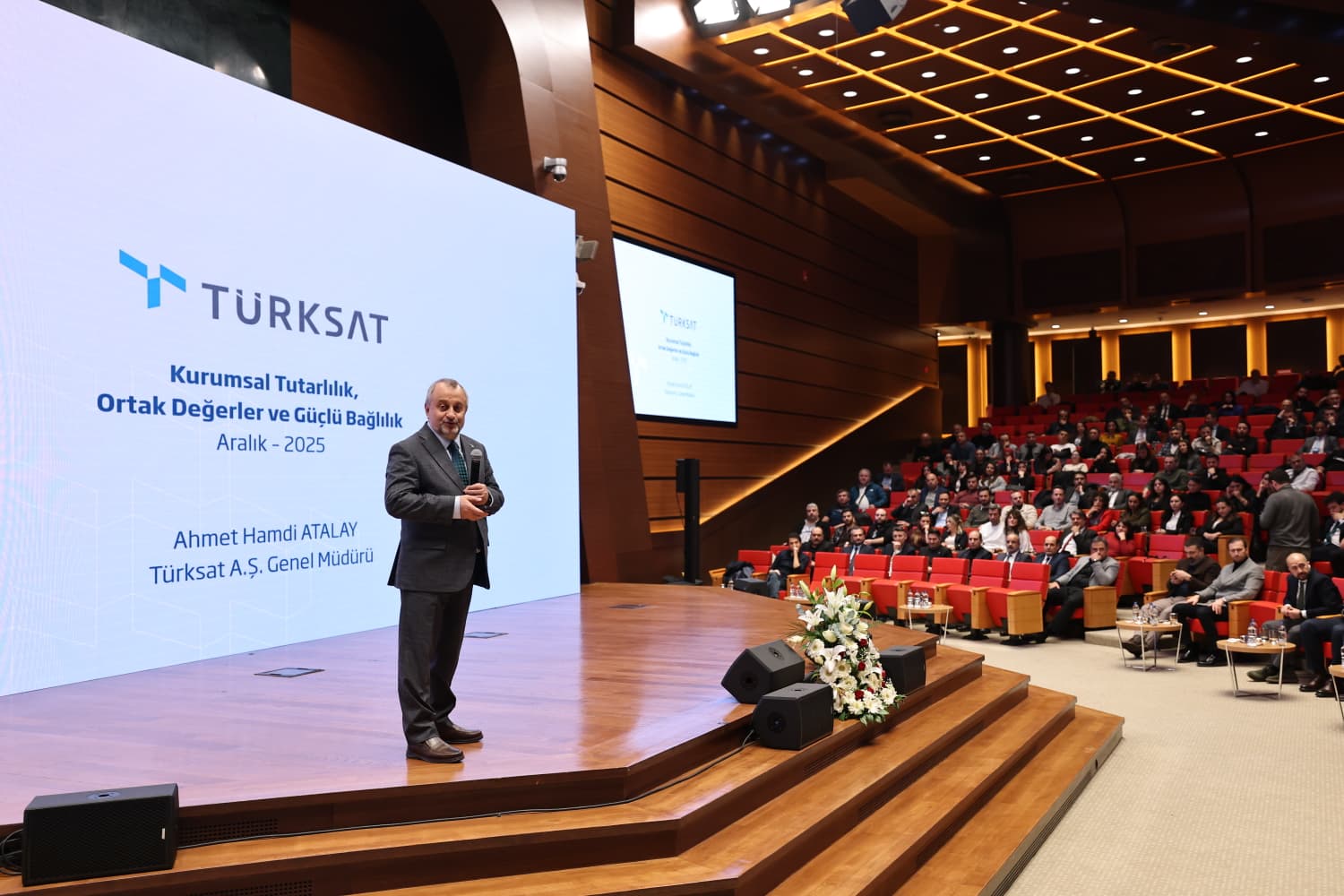 Türksat ailesi, “Kurumsal Değerlendirme, Vizyon ve Bağlılık Buluşması” kapsamında bir araya geldi. Programda konuşan Ulaştırma ve Altyapı Bakan Yardımcısı Dr. Ömer Fatih Sayan, Türksat’ın Türkiye’nin en gözde kurumlarından biri olduğunu vurgulayarak “Gözler üzerinizde” dedi. Yönetim Kurulu Başkanı Prof. Dr. Kemal Yüksek ise 2025’teki başarının “ortak aklın, güçlü ekip ruhunun ve personelin özverisinin” sonucu olduğunu ifade etti. Genel Müdür Ahmet Hamdi Atalay da 2025’in başarılarla geçtiğini belirterek, “Bütün bu anlattıklarımız sizler sayesinde oldu. Siz olmazsanız olmazdı” dedi.