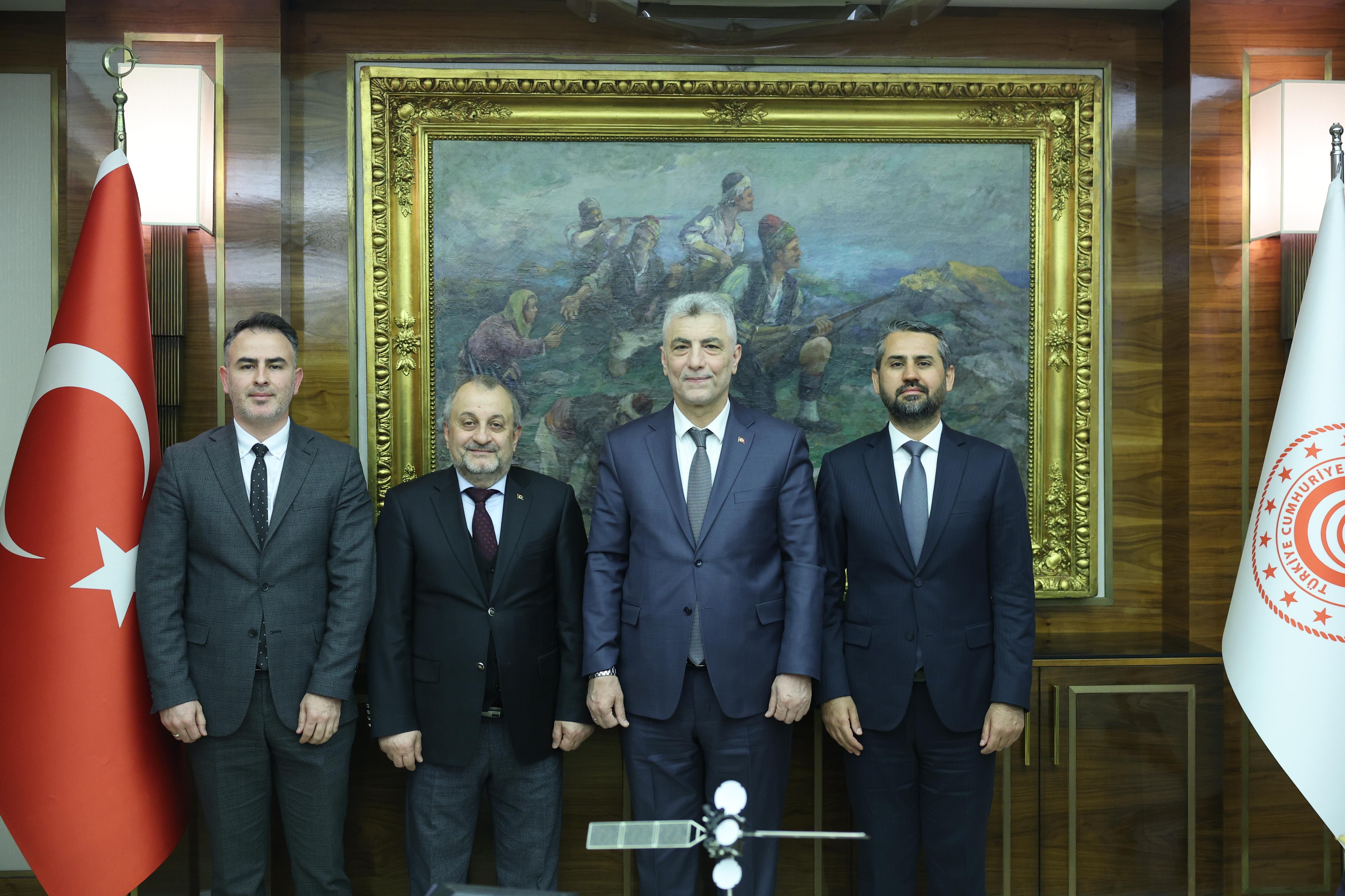 Türksat’ın Ticaret Bakanlığı ziyaretinde Genel Müdür Yardımcısı Orhan Koca ve e-Devlet İş Geliştirme ve Proje Yönetimi Direktörü Fatih Işık da hazır bulundu.