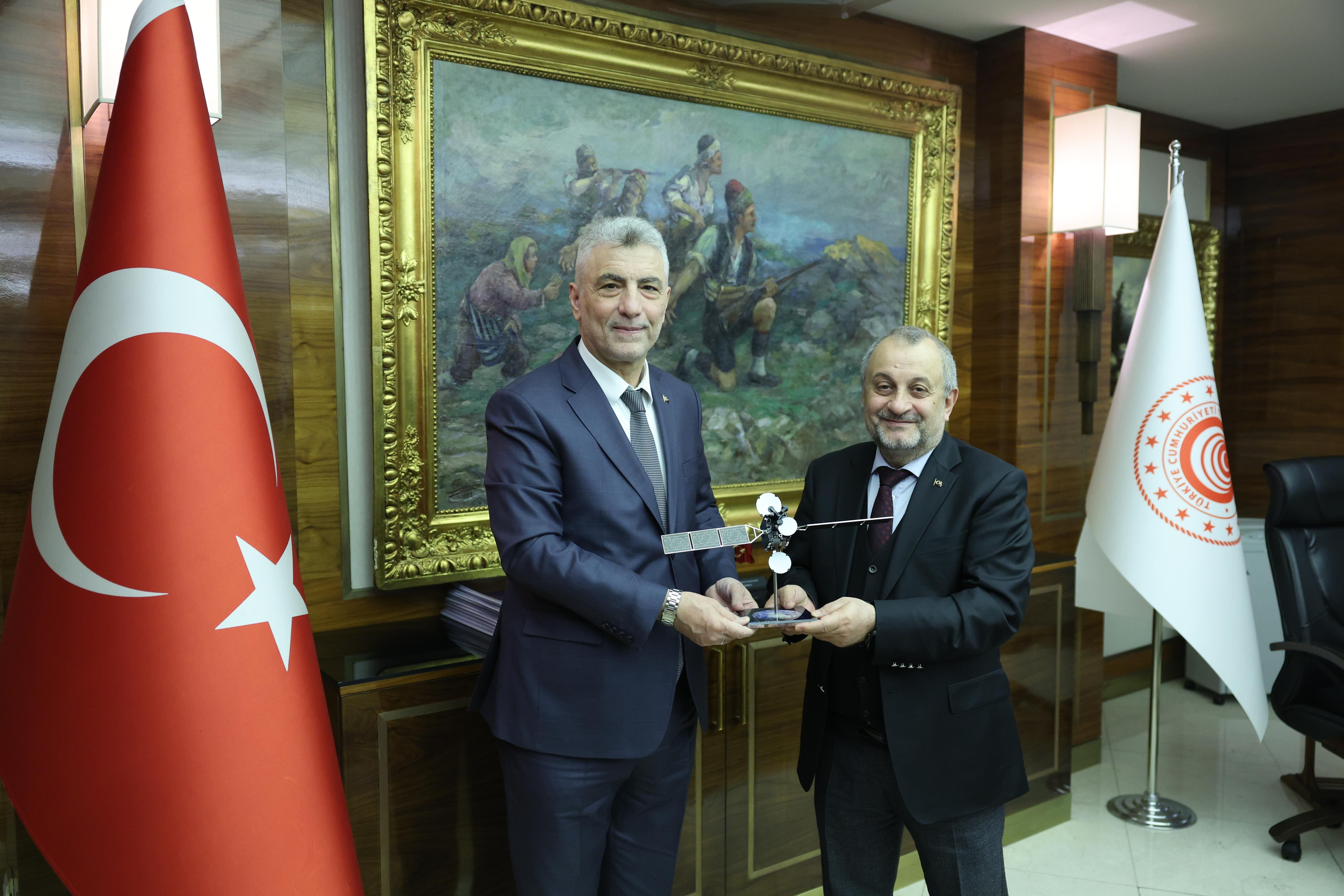 “Türksat’ın özellikle e-Devlet hizmetleri, internet ve kamu hizmetleri, siber güvenlik hizmetleri gibi alanlardaki hem hizmetlerini hem de uydu ve yazılımlarını uluslararası pazarlara, yurt dışına ihracatı noktasında Ticaret Bakanlığı ile yakın iş birliği içinde olma isteğini memnuniyetle karşıladık. Türksat’a daha büyük başarılar diliyoruz.”