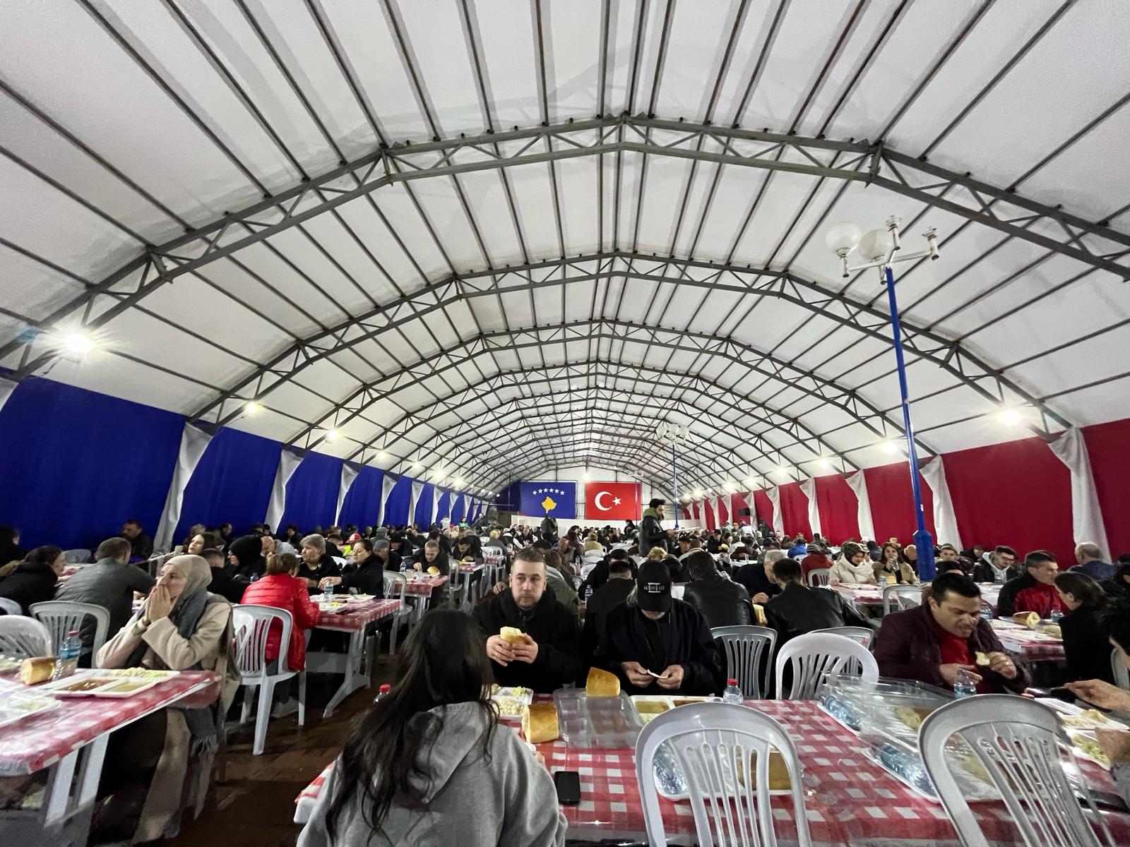 İftar çadırını dolduran Kosovalı Türk, Arnavut ve Boşnak Müslümanlar, hep birlikte oruç açtı.
