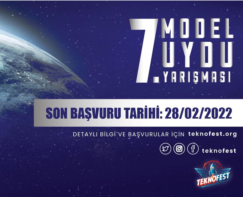 Dünyanın en büyük havacılık, uzay ve teknoloji festivali TEKNOFEST kapsamında bu yıl 7.’si gerçekleştirilecek olan Türksat Model Uydu Yarışması için son başvurular 28 Şubat’ta yapılacak. Mühendislik ve teknoloji fakültesi öğrencileri arasında her geçen yıl daha da artan bir ilgiyle düzenlenen Türksat Model Uydu Yarışması, Ağustos ayında Tuz Gölü’nde gerçekleştirilecek.