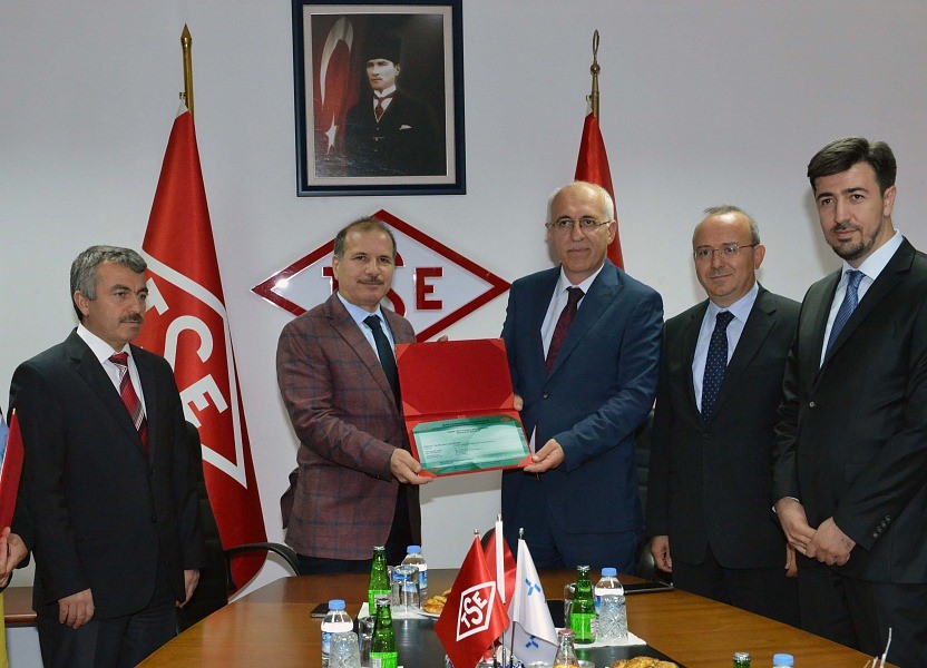 TSE Başkanlığı’nda gerçekleştirilen belge takdim töreninde TSE Başkanı Sebahittin Korkmaz, Türksat A.Ş. Genel Müdürü Prof. Dr. Ensar Gül, Türksat A.Ş. Genel Müdür Yardımcısı Dr. Halil Yeşilçimen, Türksat A.Ş. Kurumsal Bilgi ve Siber Güvenlik Yönetimi Direktörü Mehmet Ali Ortayatırtmacı hazır bulundu.