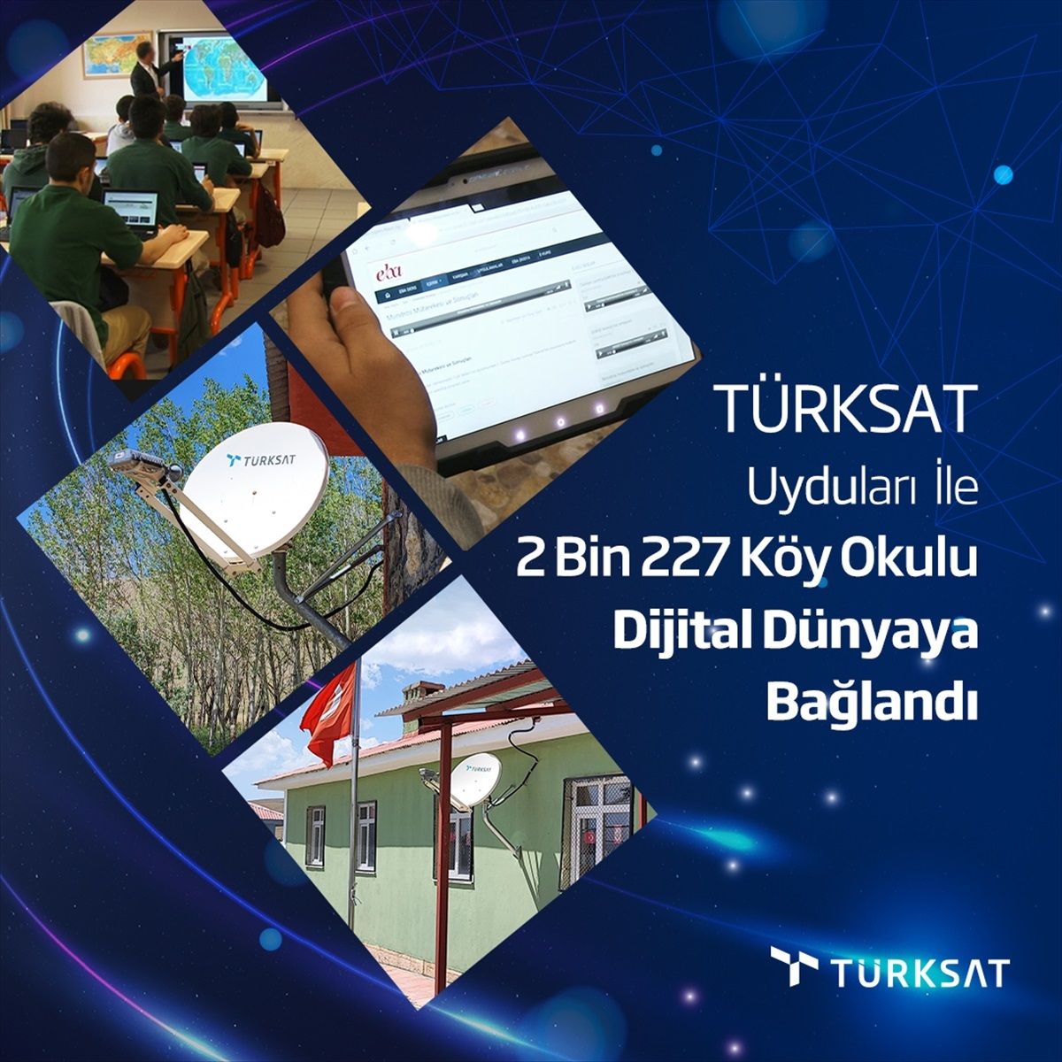 Karasal iletişim altyapısı olmaması nedeniyle internet kullanamayan köy okullarına Türksat uyduları üzerinden verilen genişbant internet hizmetinin alanı genişliyor. Bu kapsamda uydu üzerinden internet hizmeti verilen okul sayısı geçen yıla oranla yüzde 22,6 artışla 2 bin 227 köy okuluna ulaştı.