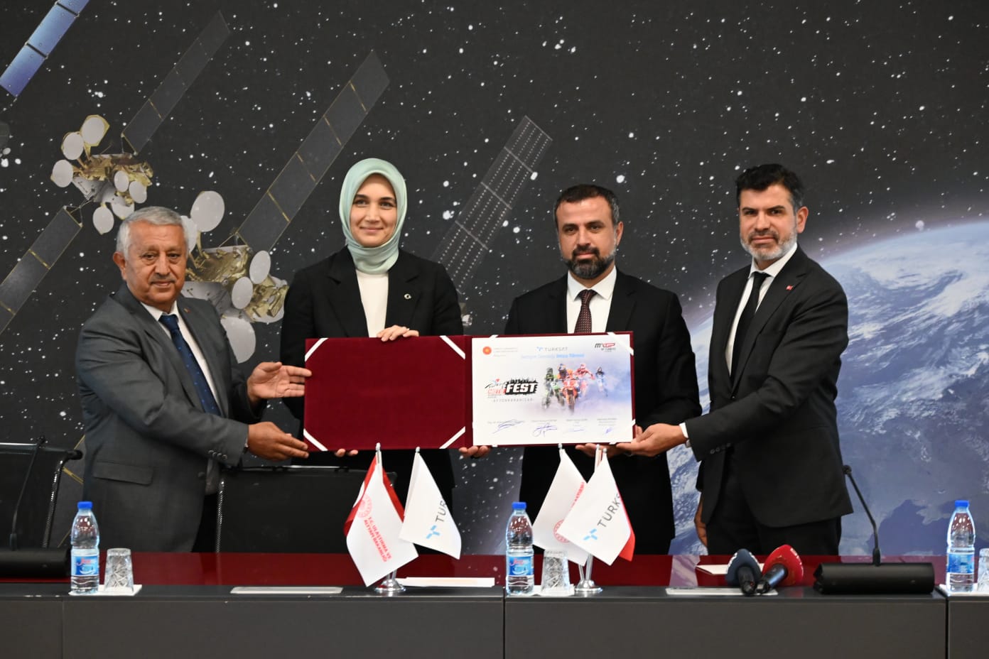 Türkiye Cumhuriyeti Cumhurbaşkanlığı himayesinde Afyonkarahisar’da 31 Ağustos- 4 Eylül tarihleri arasında gerçekleştirilecek olan "Dünya Motokros Şampiyonası ve Afyon Motosiklet Festivali" ne yönelik düzenlenen “Türksat - Türkiye Motosiklet Federasyonu İletişim Desteği İmza Töreni” Türksat Gölbaşı Kampüsü Ahmet Özsoy Binası Toplantı salonunda gerçekleştirildi.