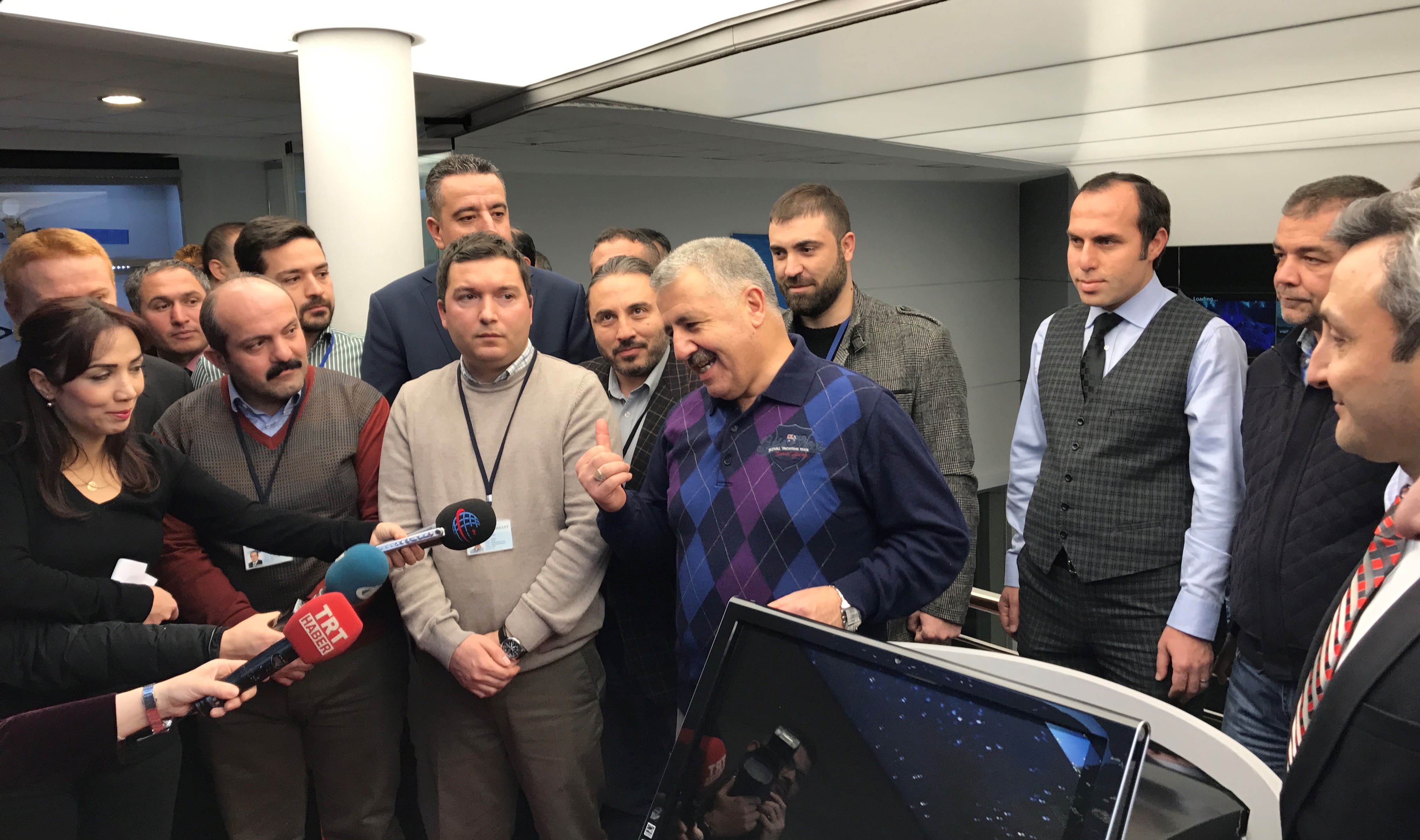 Arslan, ziyaret edilen merkeze, 15 Temmuz gecesi şehit düşen Türksat Tesisler İşletme Direktörü Ahmet Özsoy'un adının verildiğini belirterek, darbe girişimi sırasında gazi olan Muhammed Emin Sergili ve Ferhat Derecik'in o gece olduğu gibi bu gece de görevlerinin başında olduklarını kaydetti.