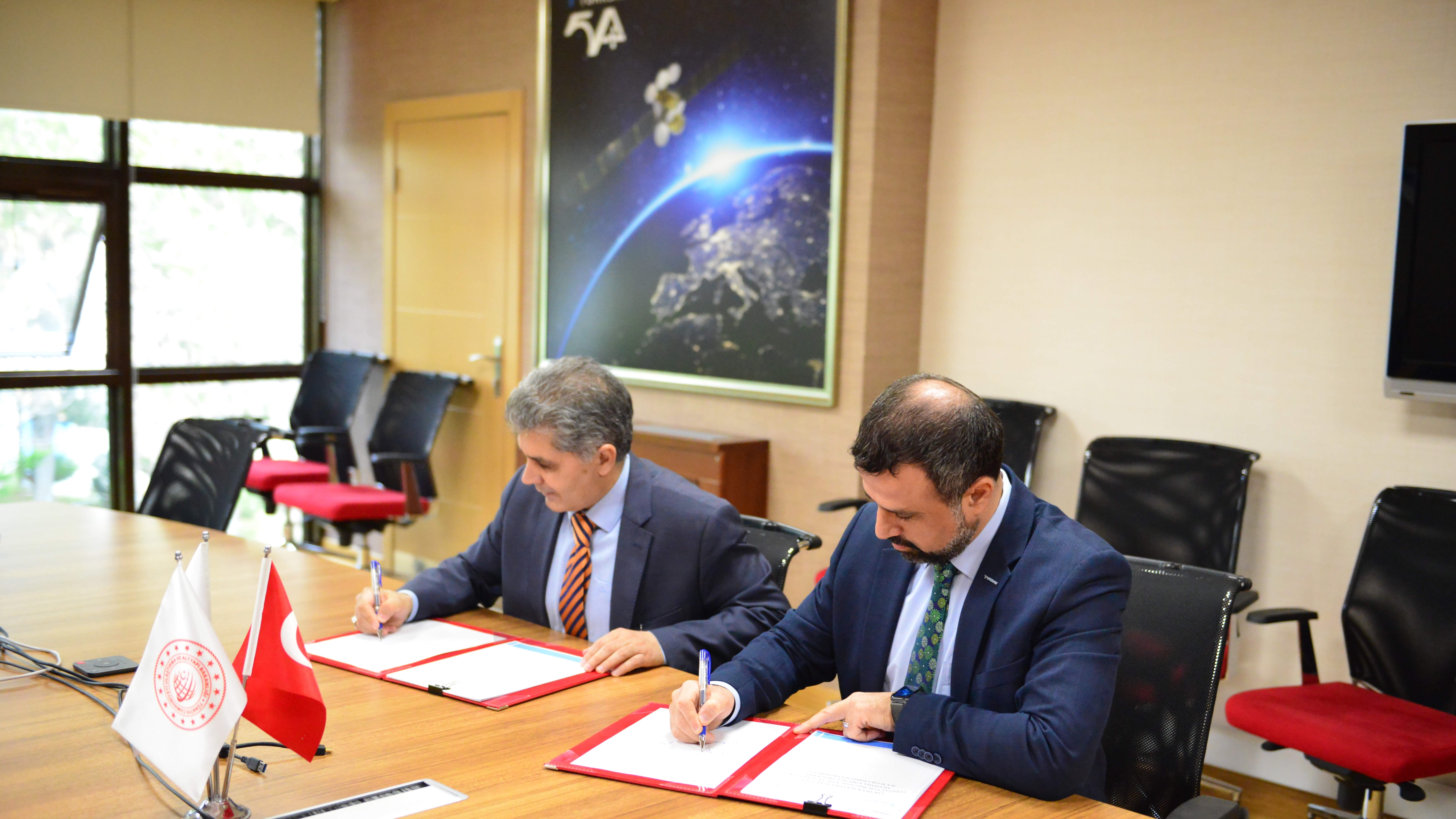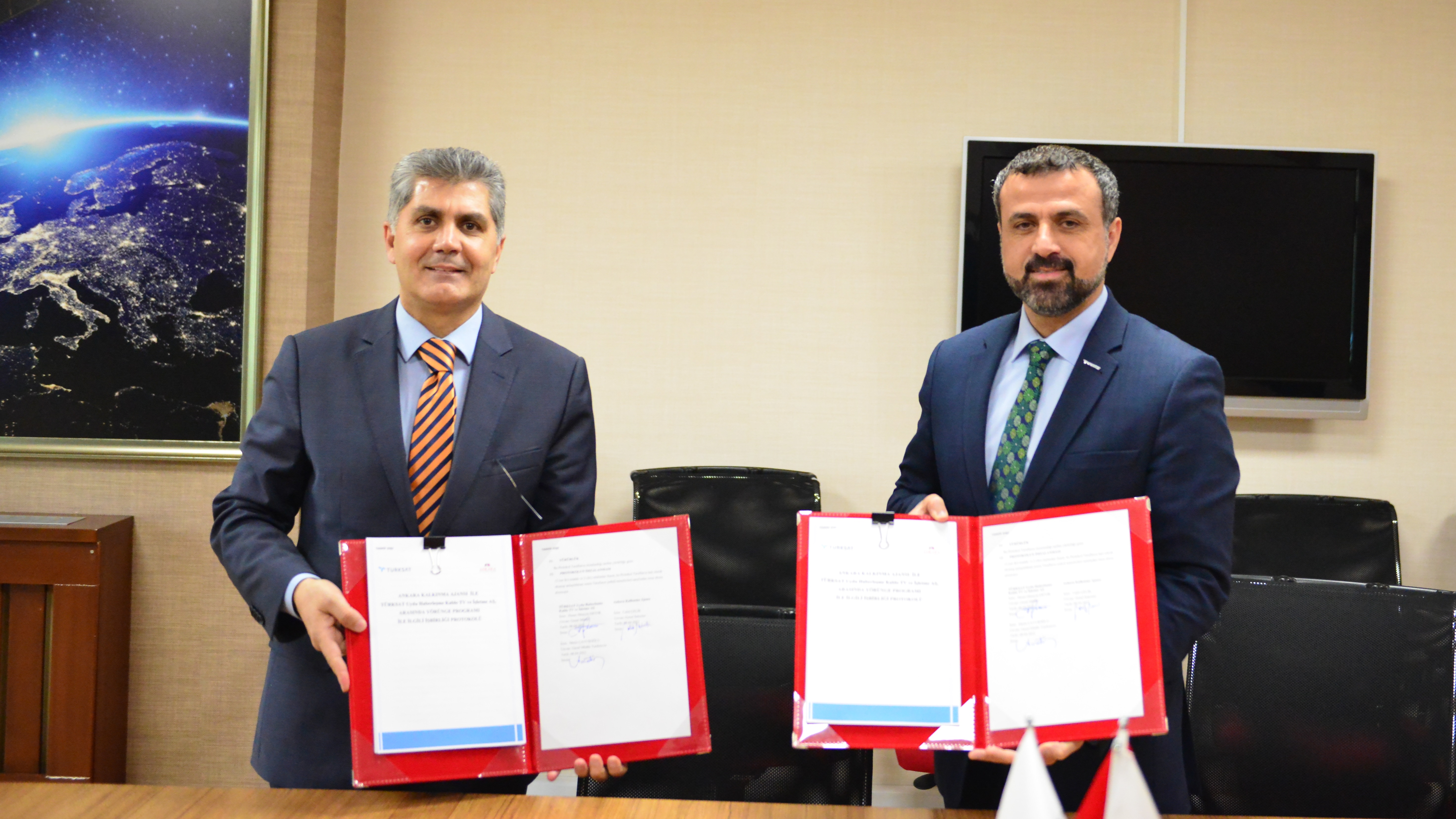 Türksat Gölbaşı Yerleşkesi’nde gerçekleştirilen imza törenine Türksat Genel Müdürü Hasan Hüseyin Ertok, Türksat İdari ve Mali İşler Genel Müdür Yardımcısı Metin Çavuşoğlu, Ankara Kalkınma Ajansı Genel Sekreteri Cahit Çelik ve yöneticilerinden oluşan heyet katıldı.