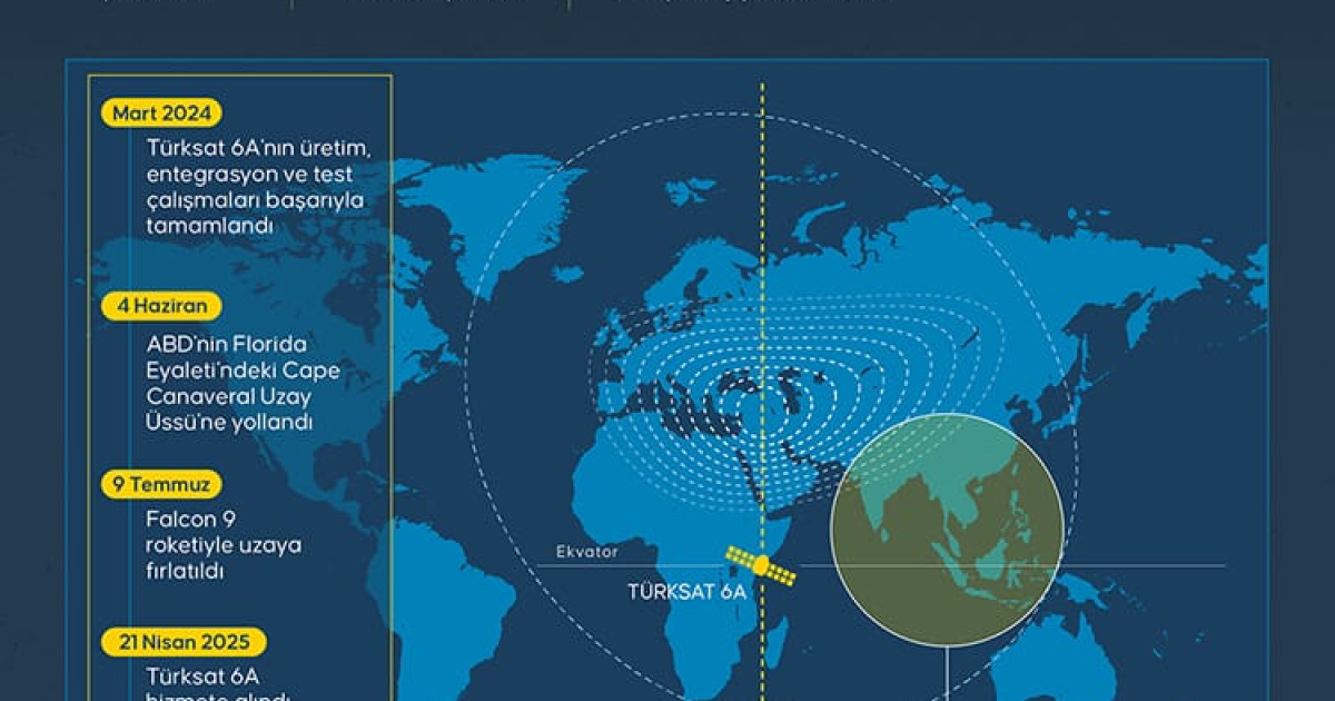 "Burada gerçekleştirilen tüm görev testlerinin ardından, Şubat 2025 itibarıyla yayın denemelerine hazır hâle geldi. İlk test yayını 17 Şubat 2025'te başarıyla gerçekleştirildi. Böylece Türksat 6A'nın yayın kapasitesi pratik olarak doğrulandı. Tüm fonksiyonları normal şekilde çalışan uydu, 21 Nisan 2025'te Cumhurbaşkanı Recep Tayyip Erdoğan'ın katılımıyla gerçekleştirilen törenle resmen hizmete alındı. 42 derece doğu yörüngesinde görev yapacak uydu, yüksek yerlilik oranı ve geniş kapsama alanıyla ülkemizin uzay ve haberleşme kapasitesine önemli katkı sağlıyor."