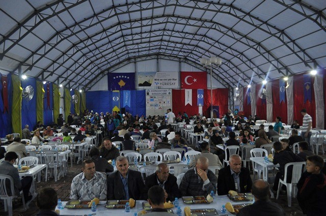 Ramazan’ın ilk iftarı için bir araya gelen, Kur’an-ı Kerim tilavetinin ve ezanın ardından iftar çadırını dolduran Kosovalı Türk, Arnavut ve Boşnak Müslümanlar, hep birlikte oruç açtı.