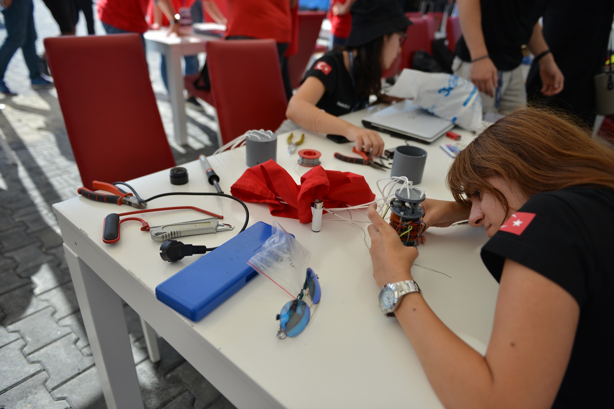 Yarışma alanını ziyaret eden Teknofest Yürütme Kurulu Üyesi ve Sanayi ve Teknoloji Bakan Yardımcısı Mehmet Fatih Kacır tek tek yarışmacı öğrencilerle sohbet ederek başarı dileklerini iletti.
