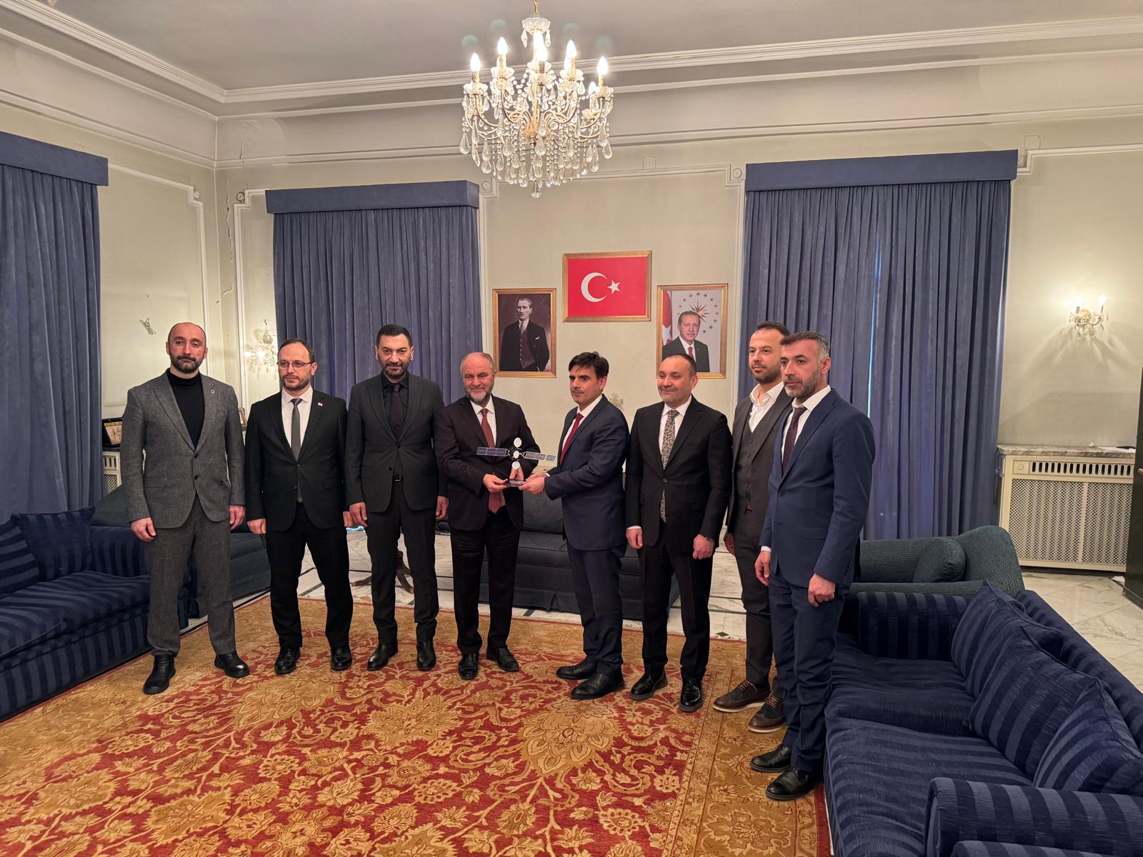 Türksat heyeti, program kapsamında Türkiye’nin Şam Büyükelçiliği’ni de ziyaret ederek, Büyükelçi Prof. Dr. Burhan Köroğlu ile bir araya geldi. Görüşmede Suriye’nin genel durumu ve iletişim alanındaki ihtiyaçlar üzerine değerlendirmelerde bulunuldu.