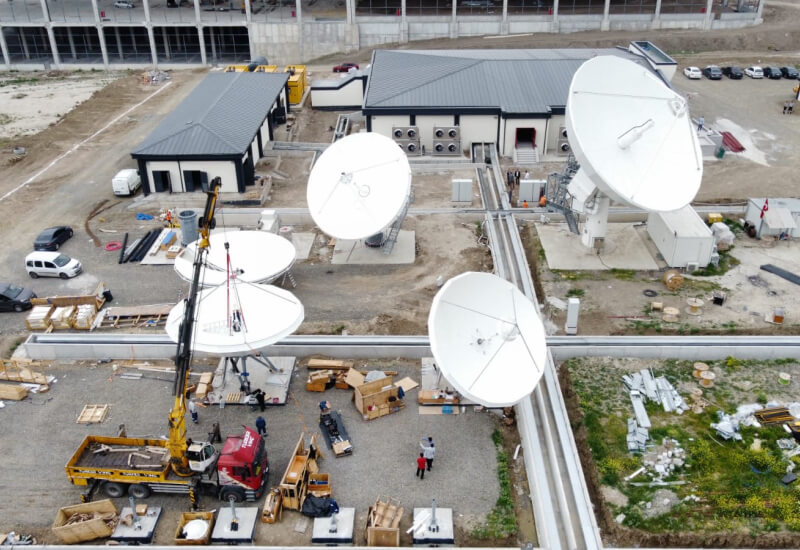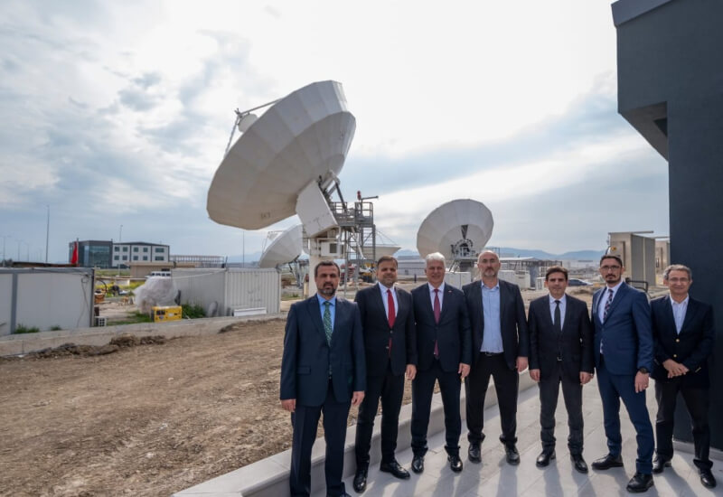 Ziyarette, Uzay ve Havacılık İhtisas Organize Sanayi bölgesinde (HAB) yapımı devam eden yedeklilik merkezinde, uydu yer kontrol istasyonları ile entegre çalışacak anten sistemlerine yönelik incelemelerde bulunularak gelinen son duruma ilişkin bilgi alındı.